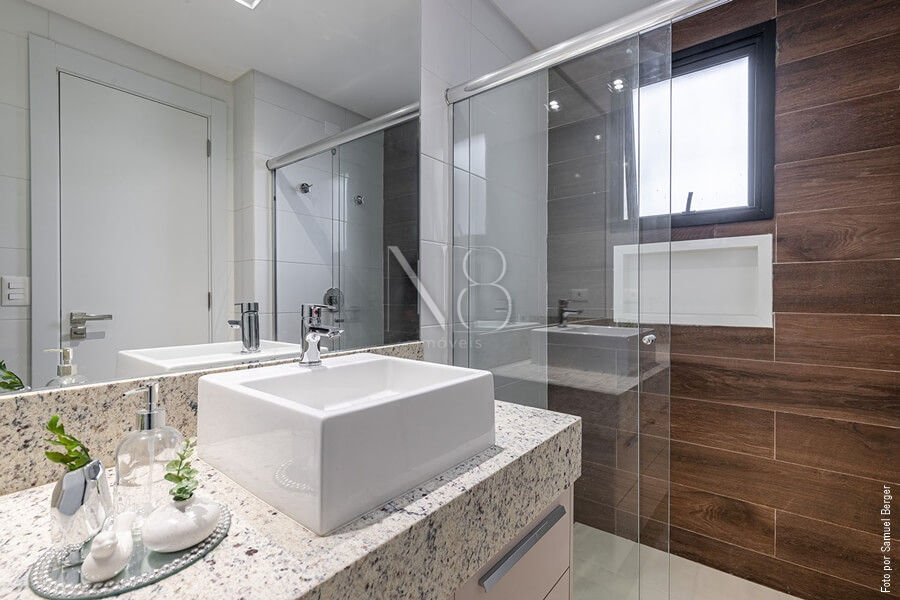 Com acabamento de alto padrão, o Terrasse Normandie oferece tampo de granito nos banheiros, infraestrutura para ar-condicionado, piso porcelanato e forro rebaixado em gesso, tudo projetado para garantir a máxima funcionalidade e sofisticação.