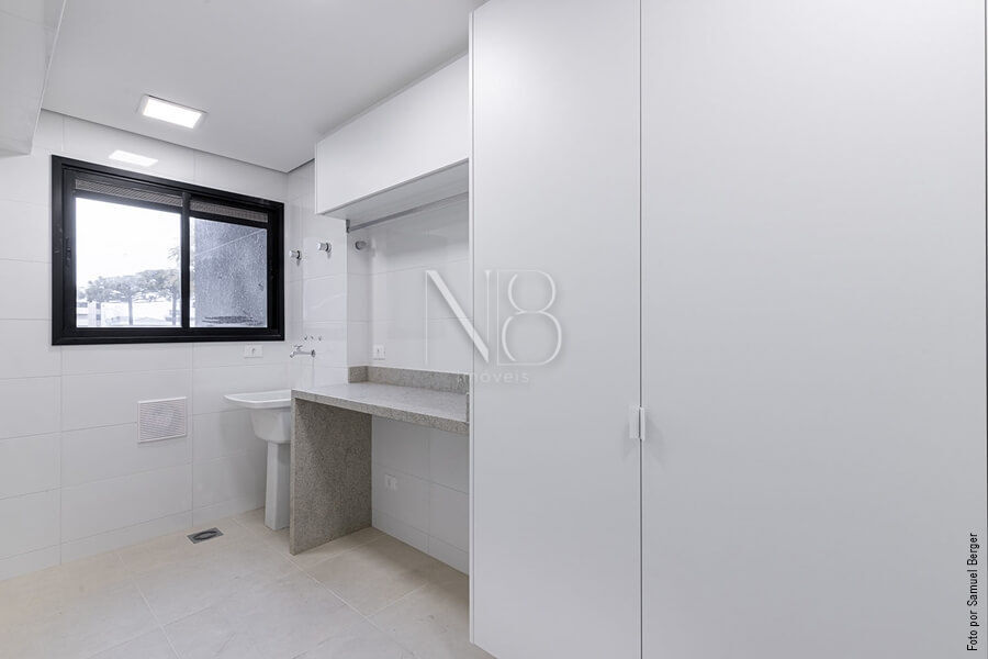 No pavimento inferior, você encontra uma sala para 02 ambientes, cozinha integrada, lavabo, área de serviço com banheiro e banheiro social.