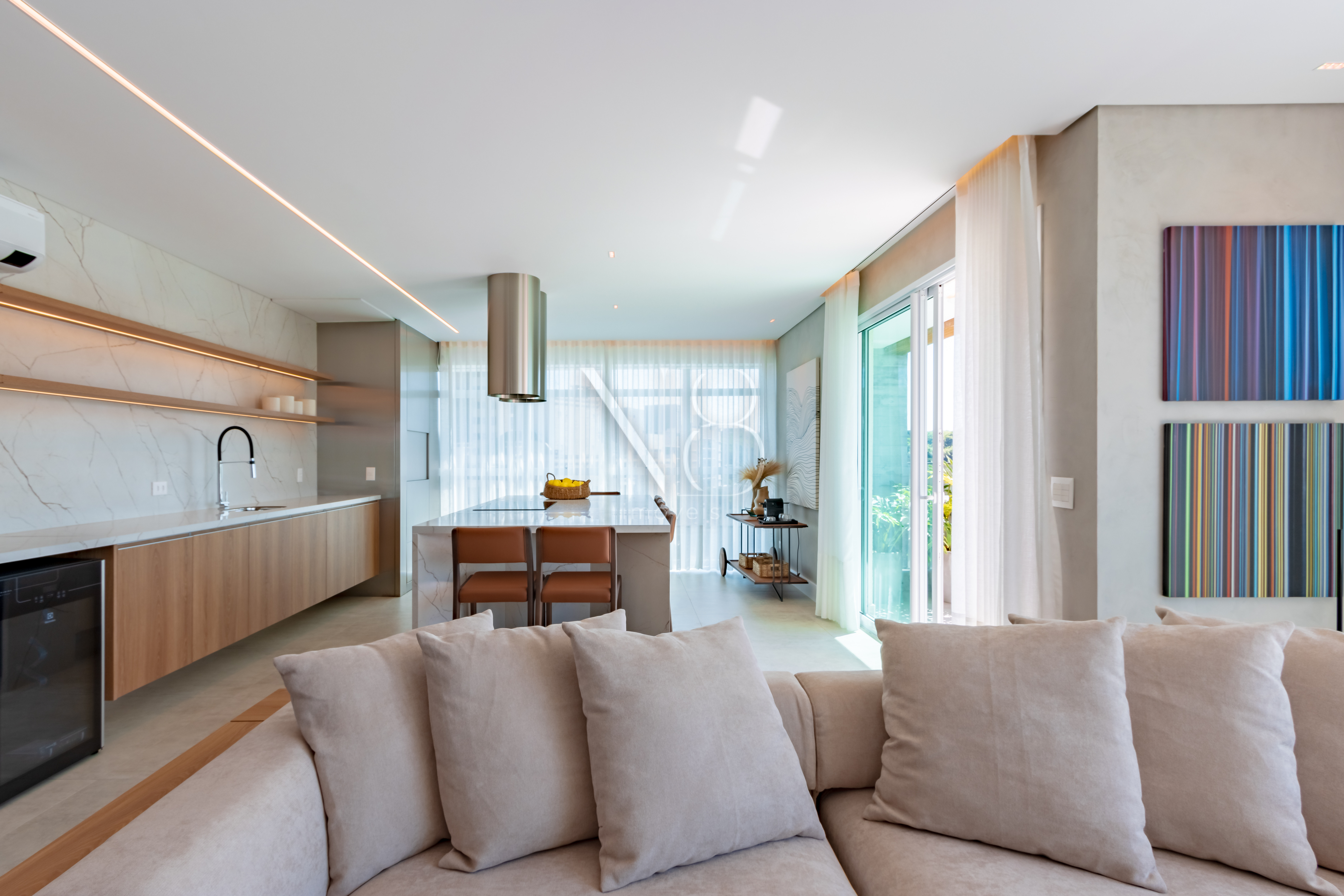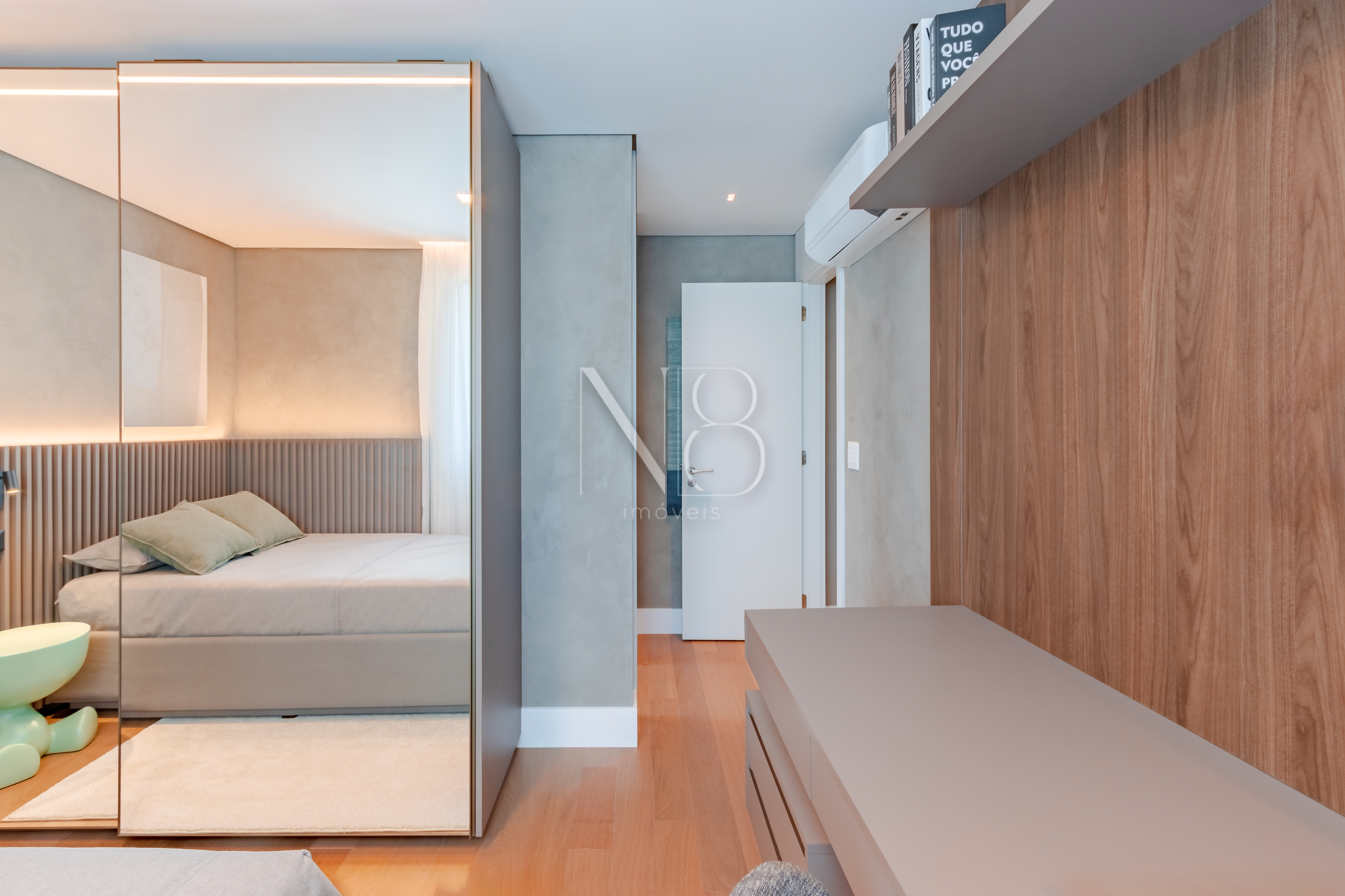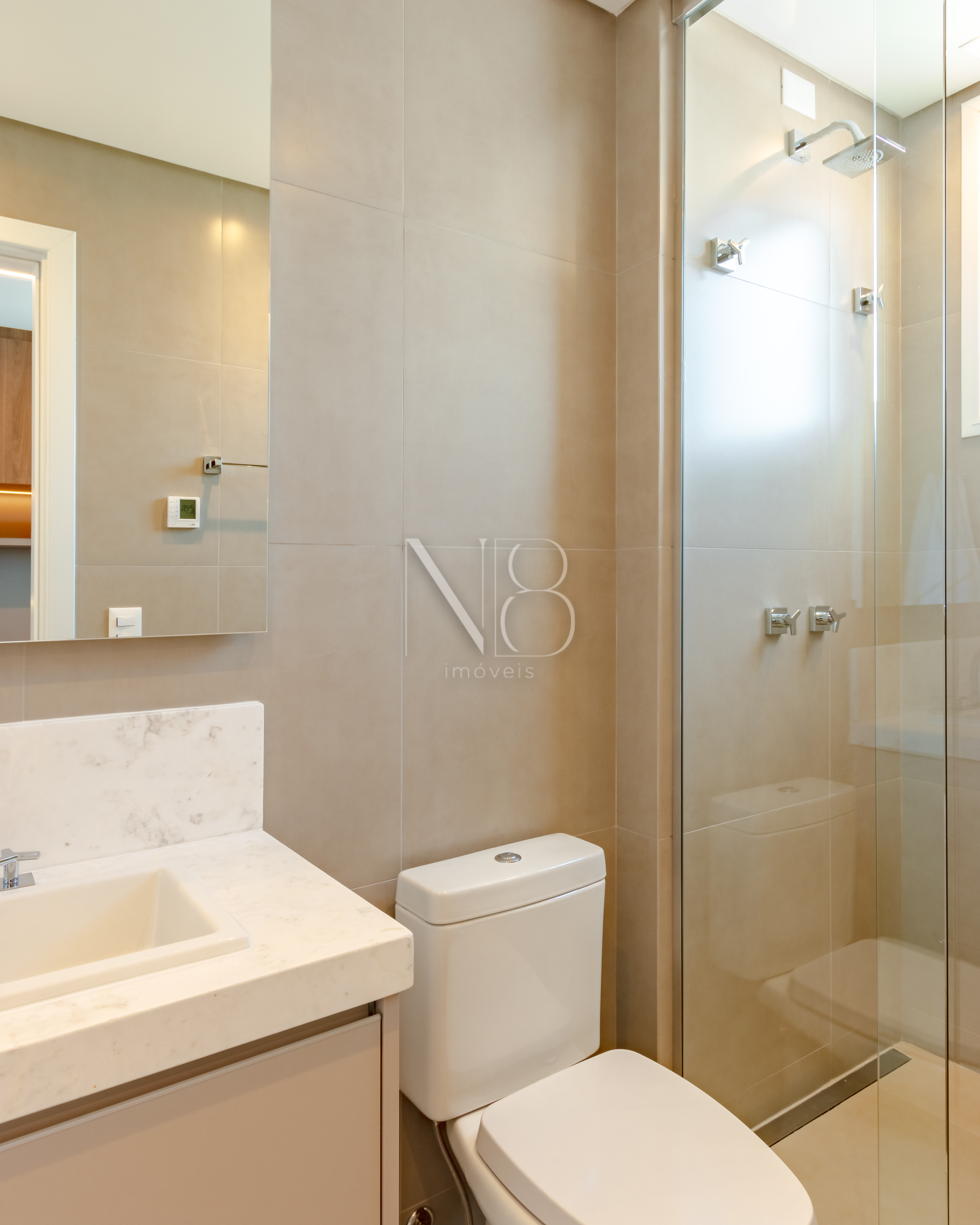 Os apartamentos contam com persianas motorizadas, piso aquecido nos banheiros e infraestrutura para ar condicionado em todos os quartos e salas, garantindo conforto e praticidade em todos os ambientes.