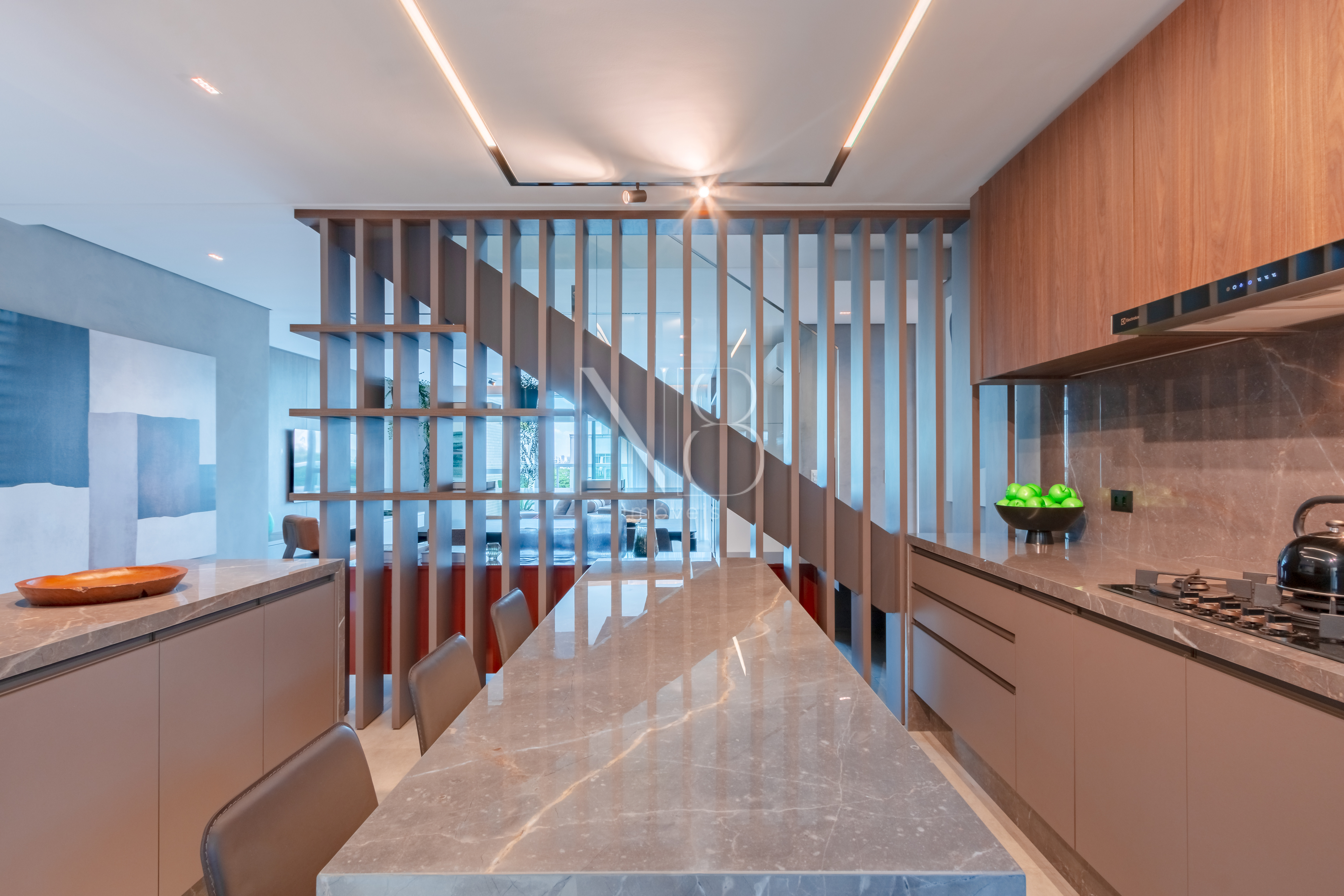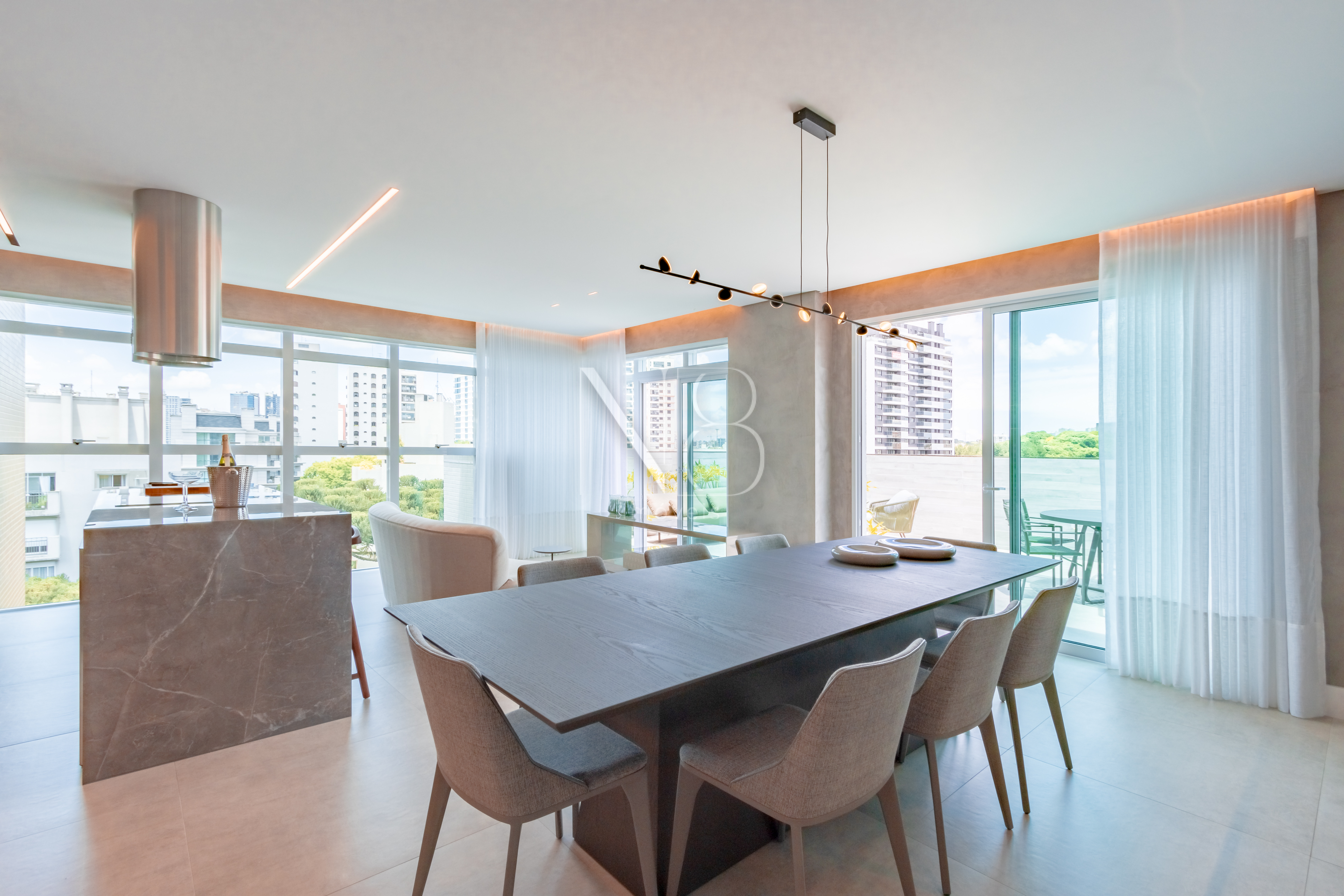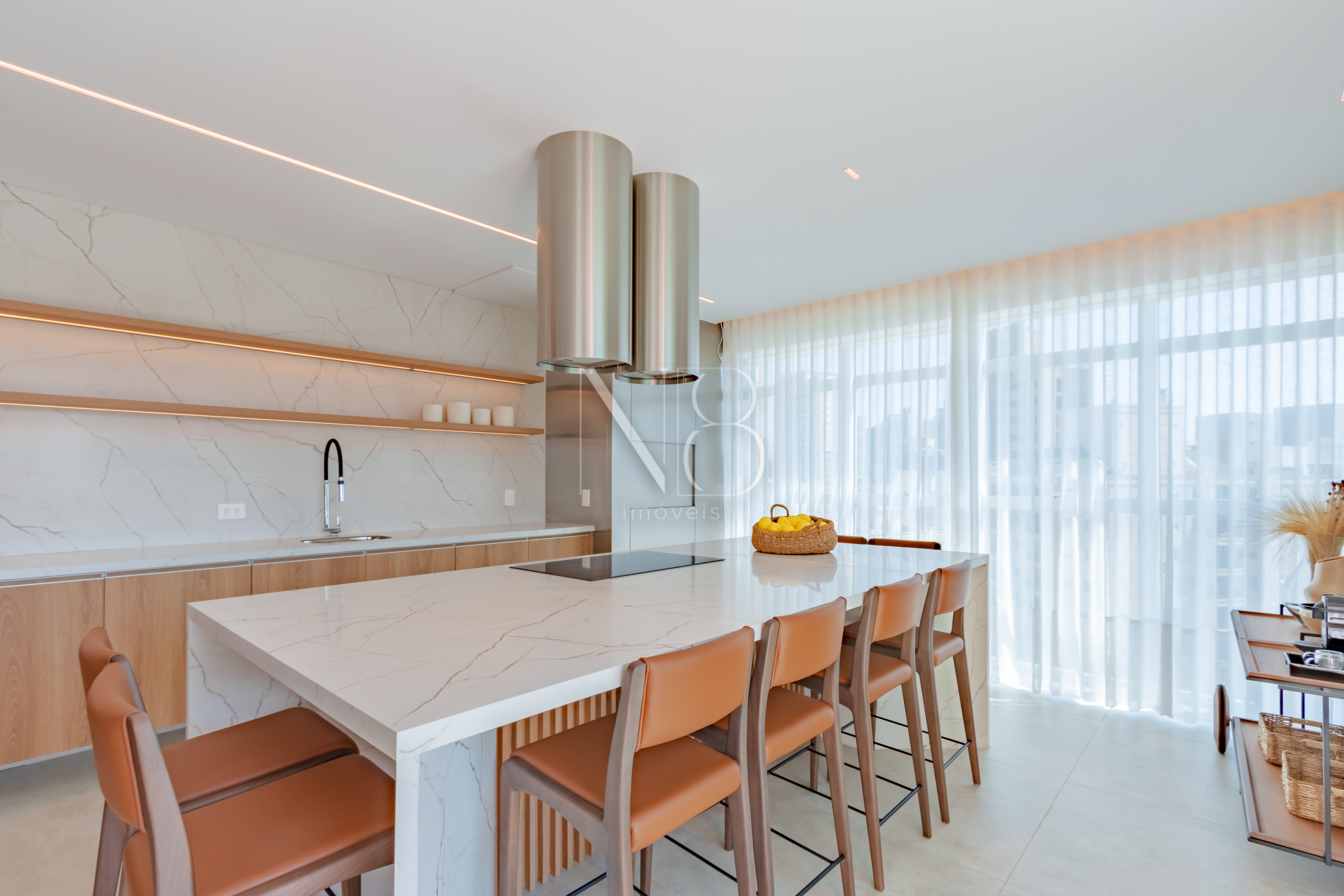 Os apartamentos contam com persianas motorizadas, piso aquecido nos banheiros e infraestrutura para ar condicionado em todos os quartos e salas, garantindo conforto e praticidade em todos os ambientes.